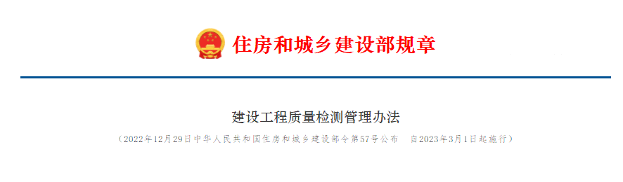 最新版《建設工(gōng)程質量檢測管理(lǐ)辦法》3月(yuπ®σ₩è)1日(rì)執行(xíng)